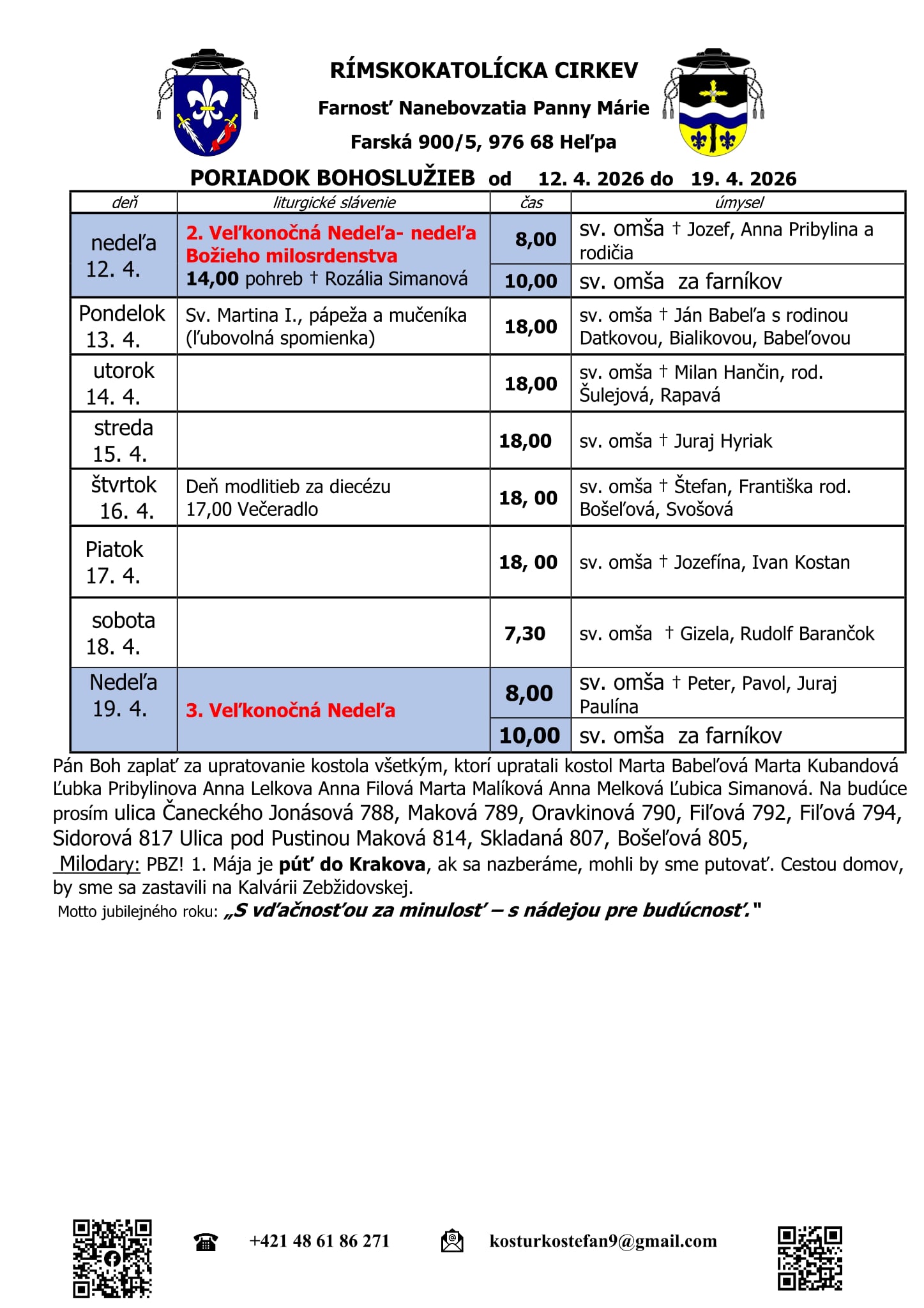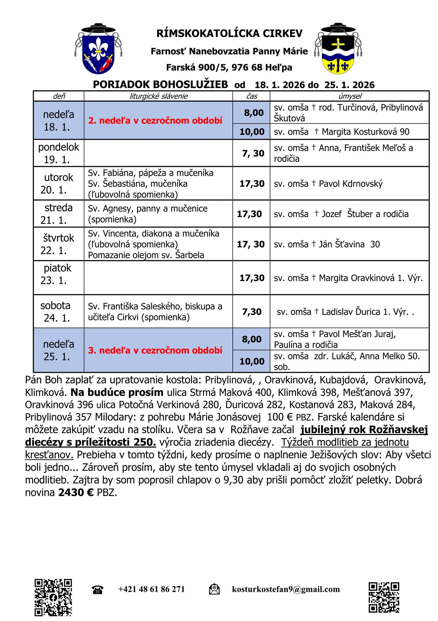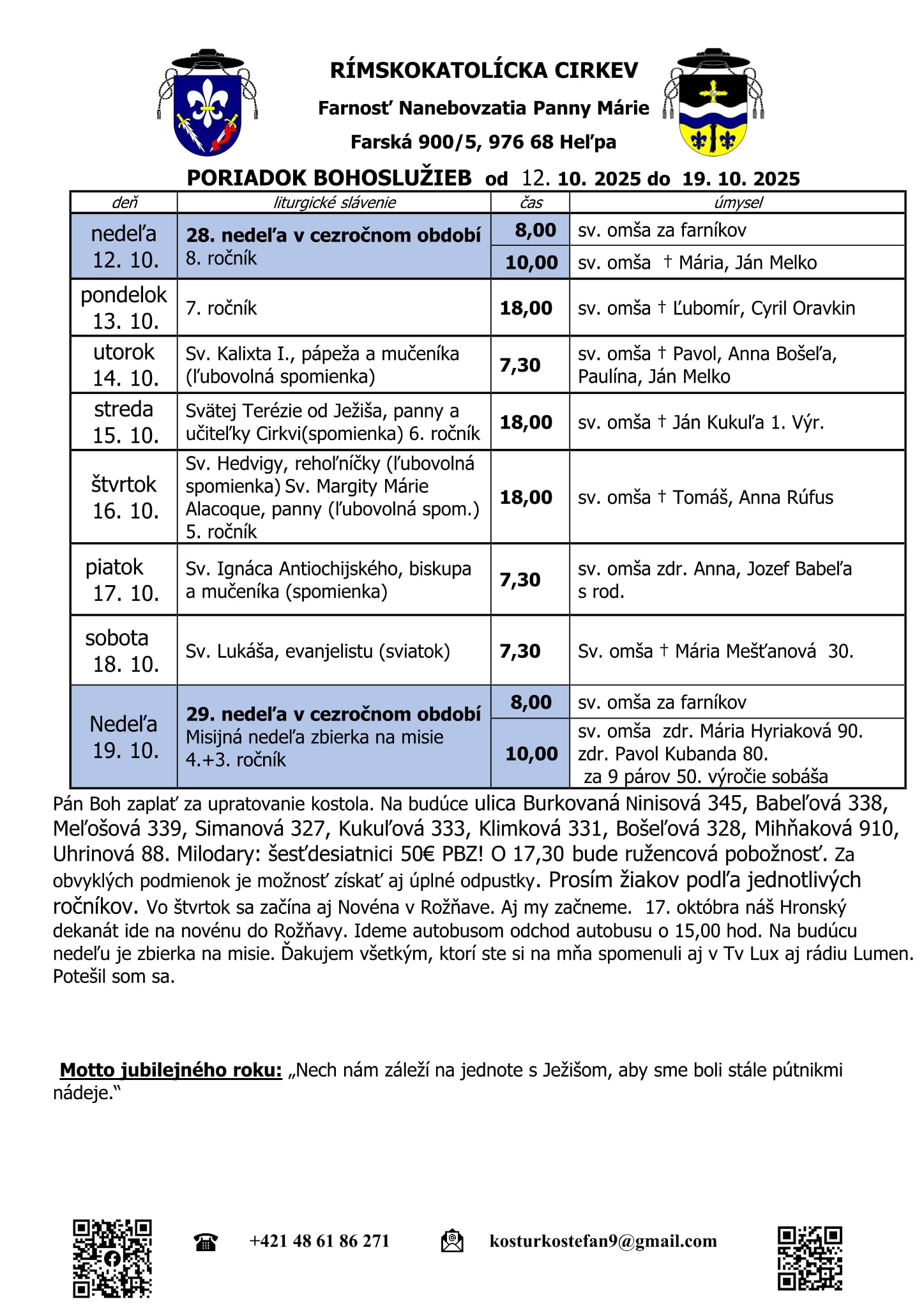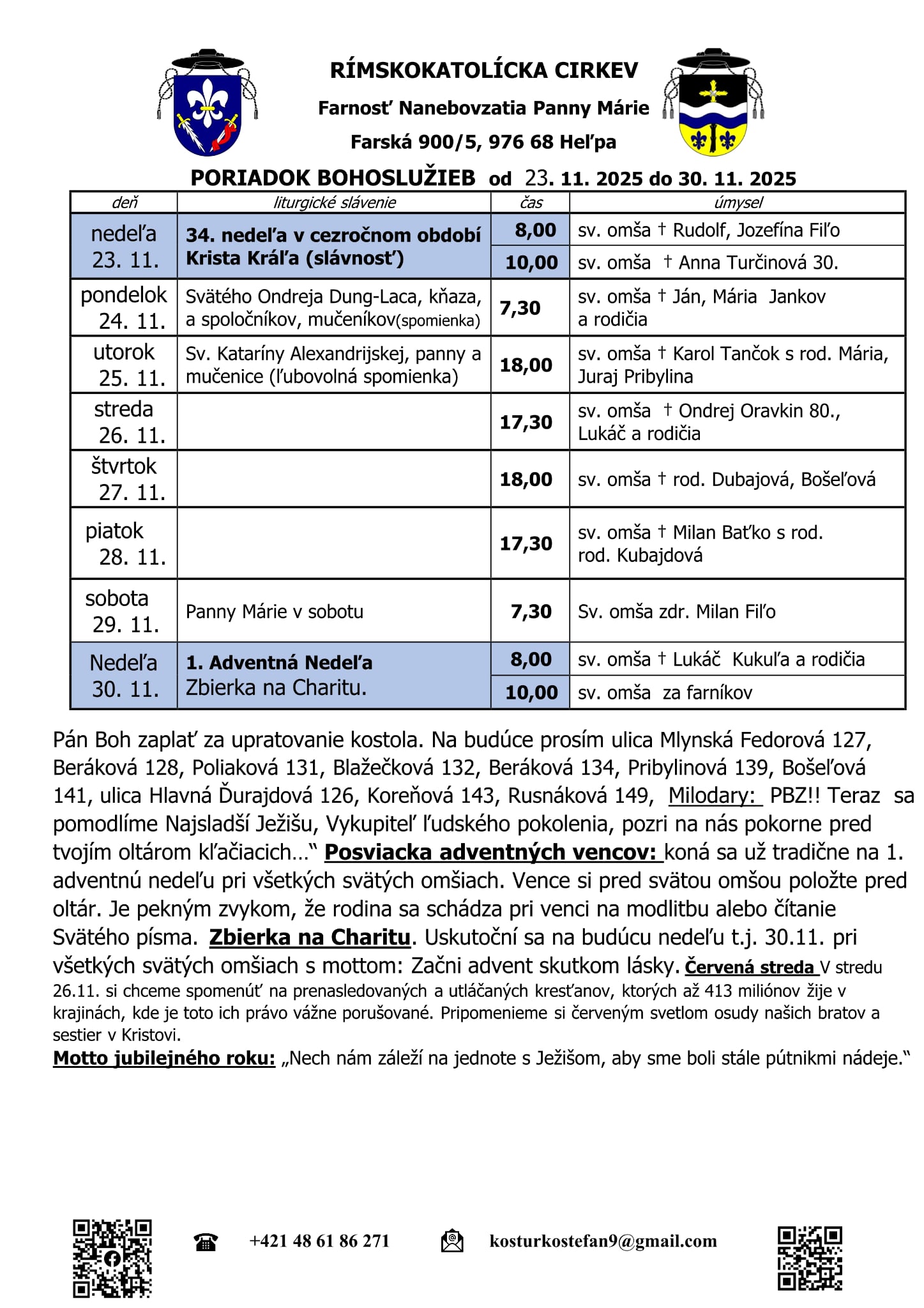 Adresa: Farský úrad, Farská 900/5, 976 68 Heľpa